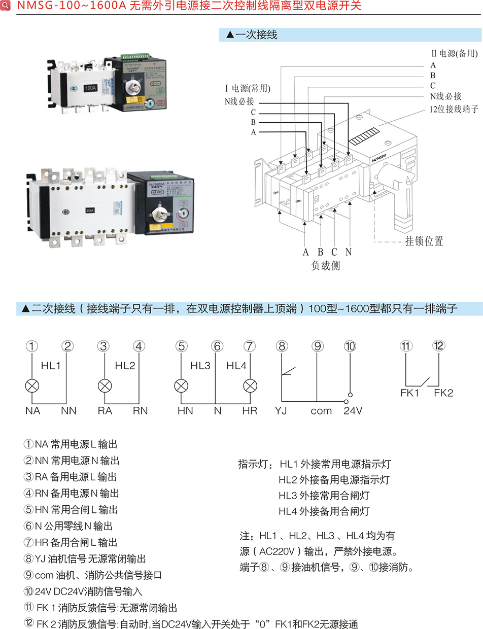 NMSG-100~1600A隔離型雙電源開關